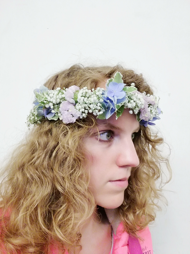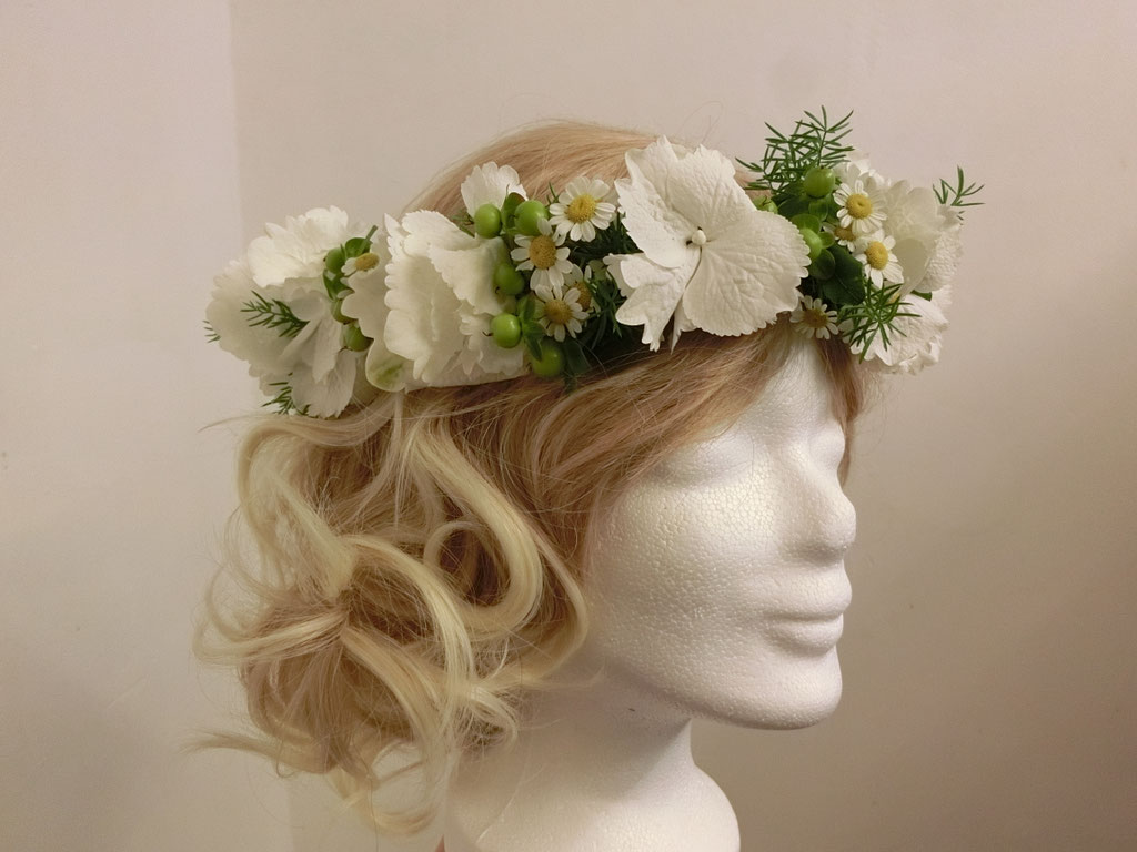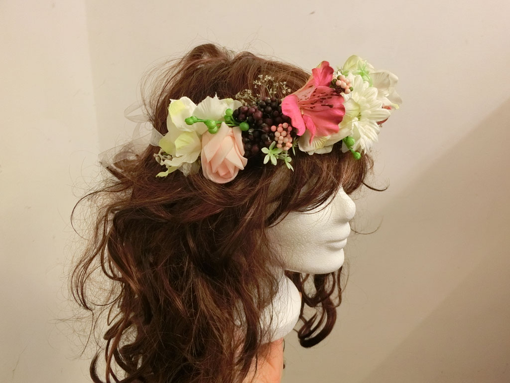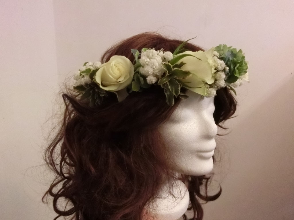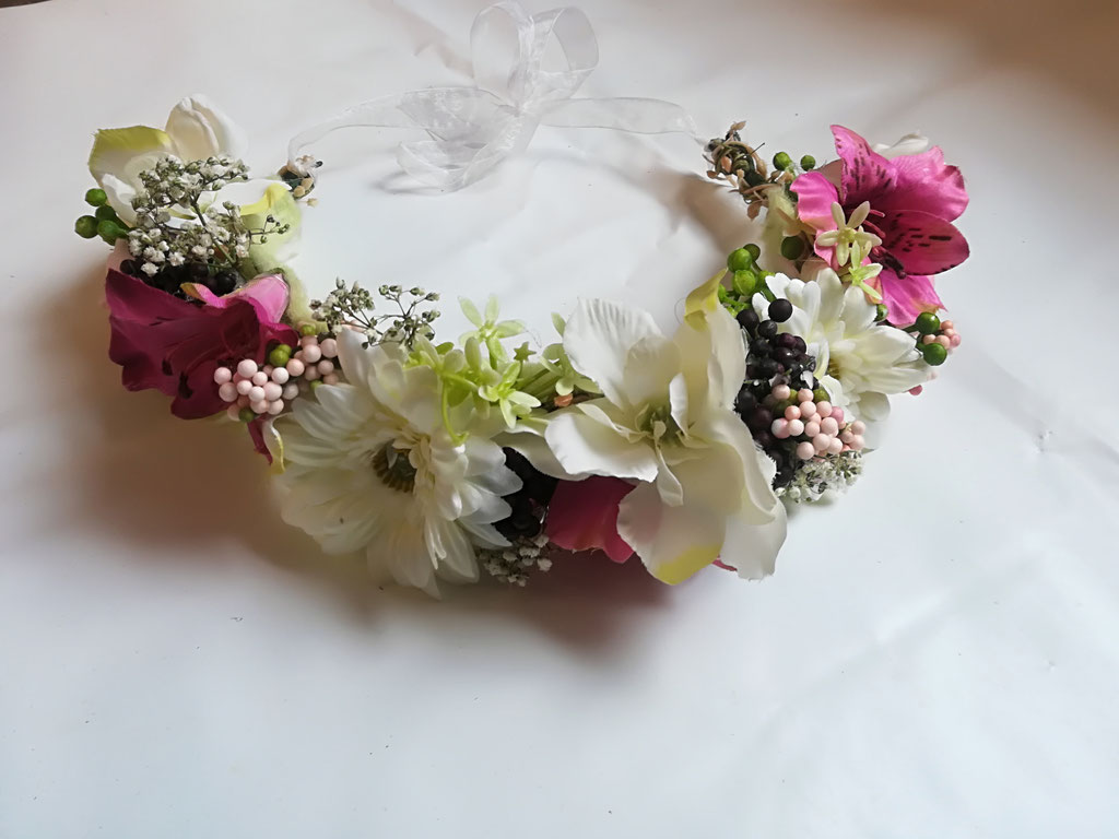 Neu! Bei uns finden Sie ab sofort auch Blumenkränze für die Haare und den Arm, in verschiedenen Größen und Farben.