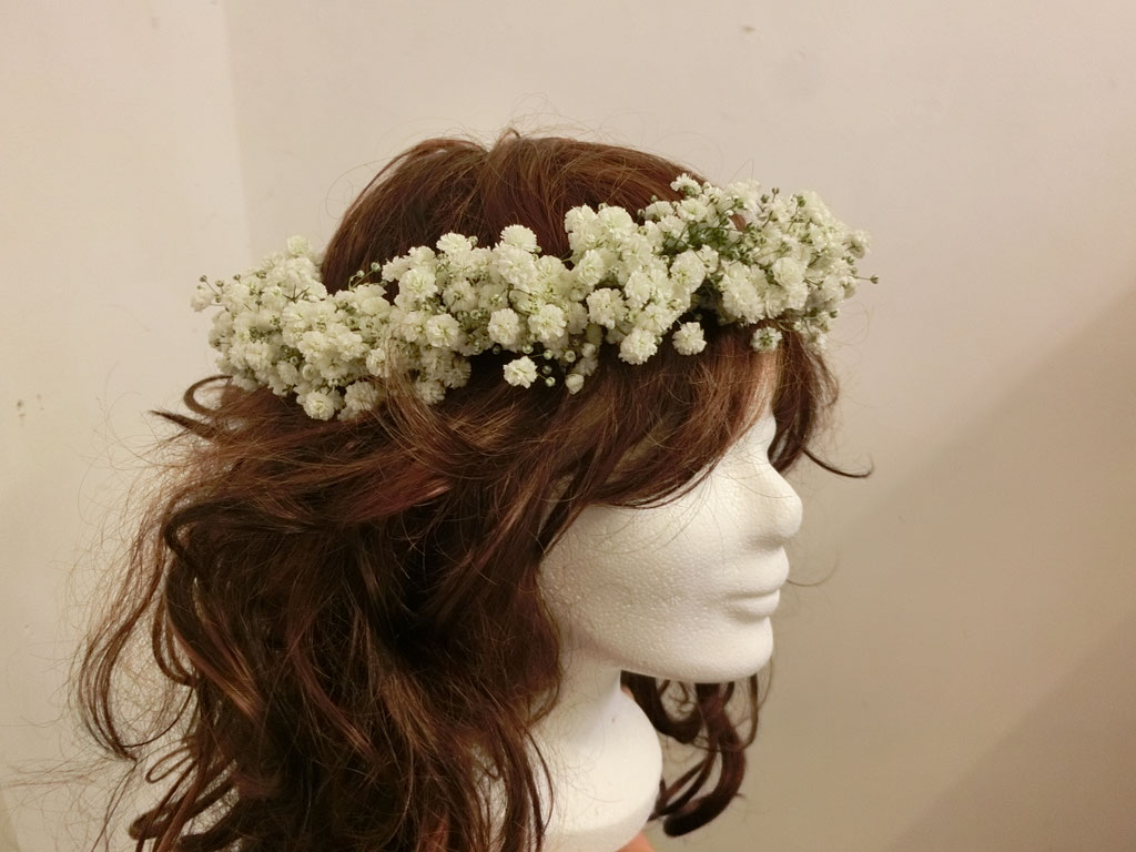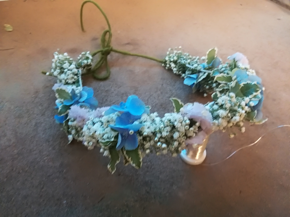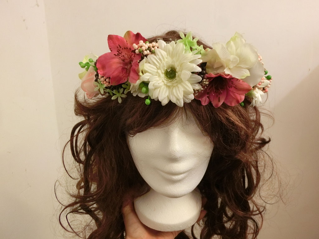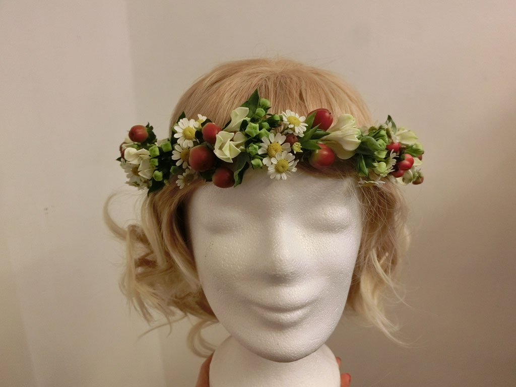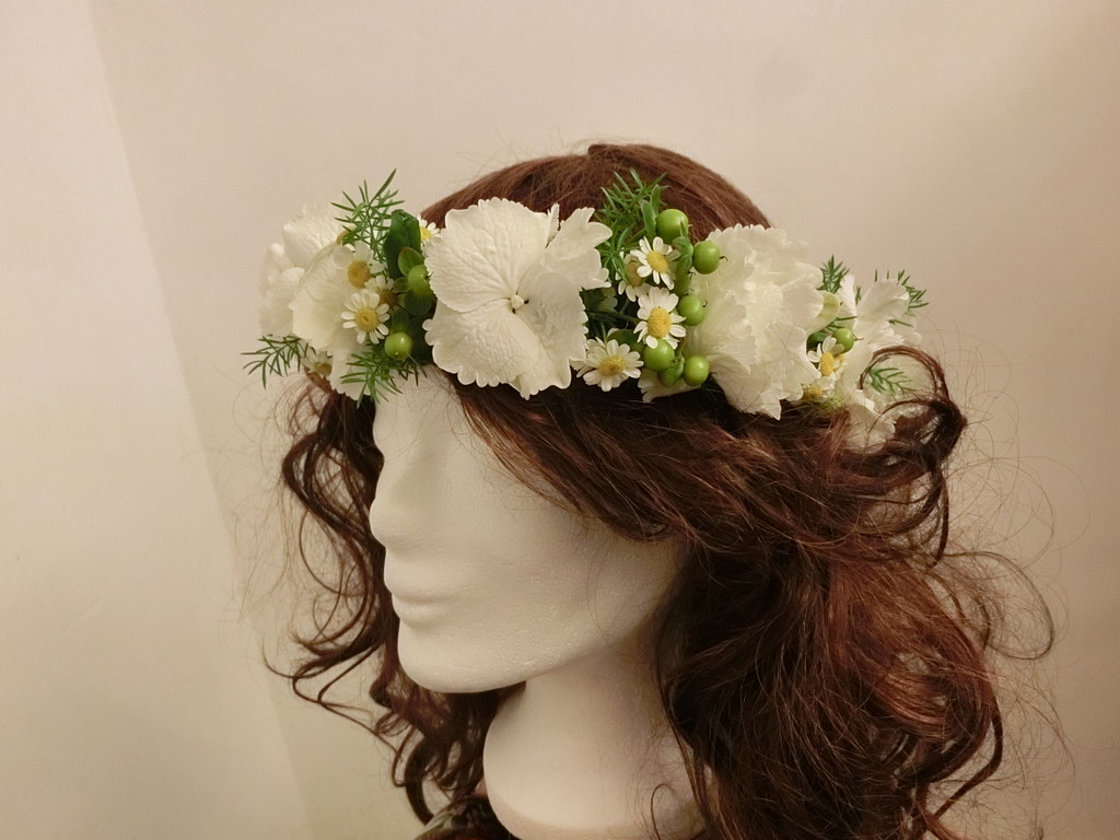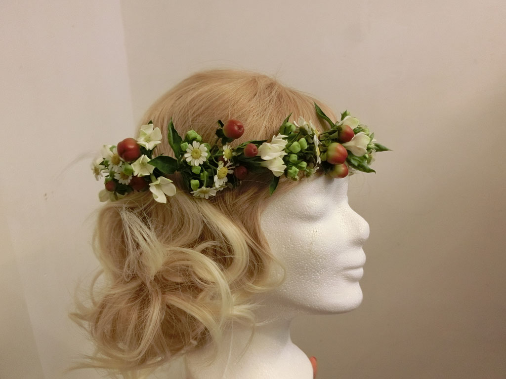 Neu! Bei uns finden Sie ab sofort auch Blumenkränze für die Haare und den Arm, in verschiedenen Größen und Farben.