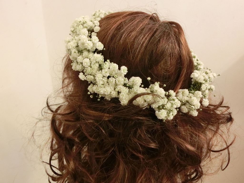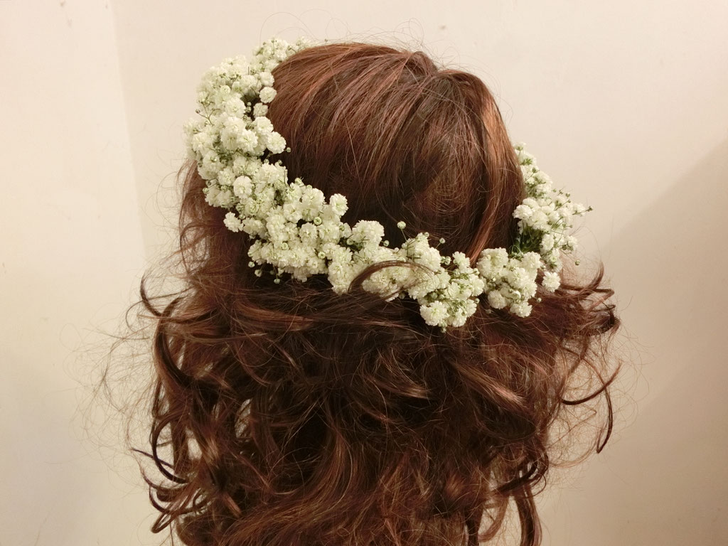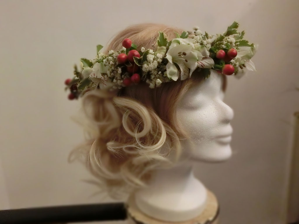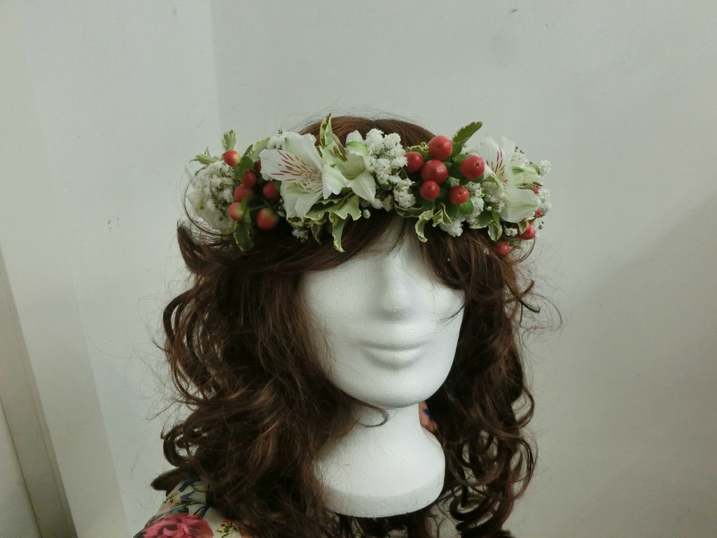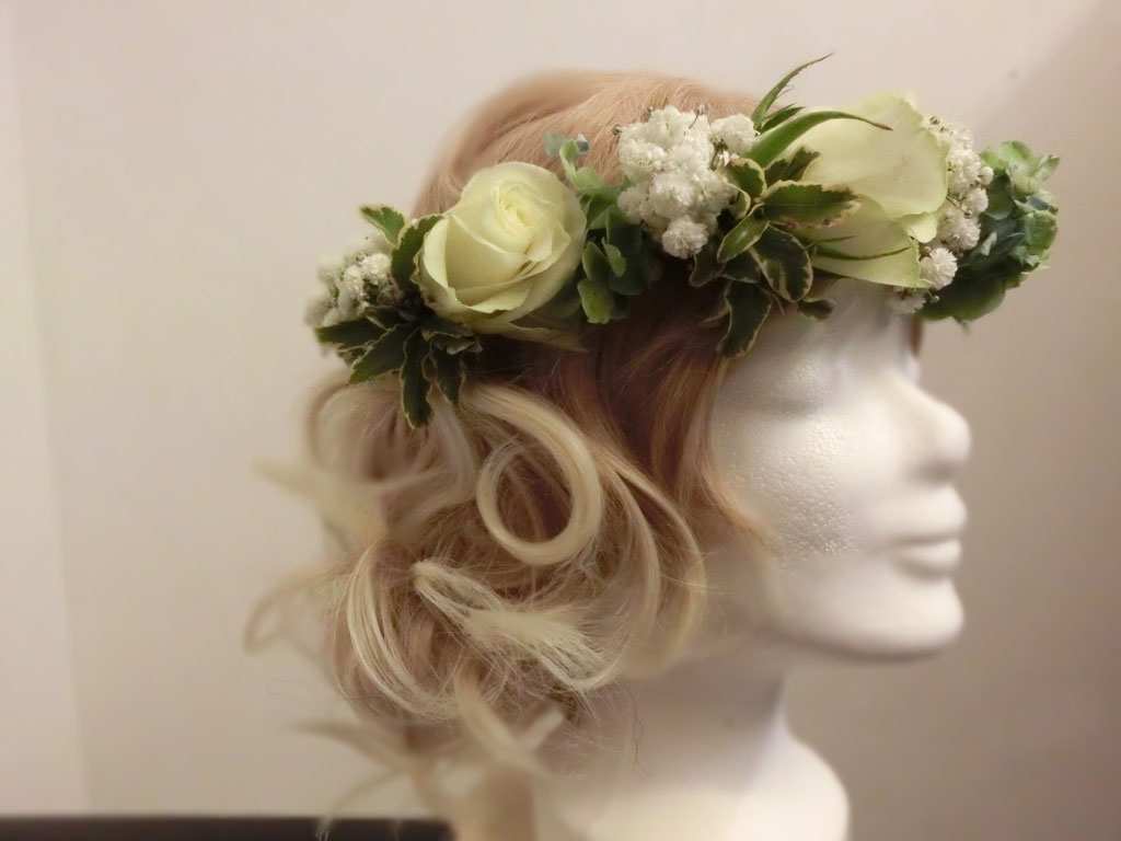 Neu! Bei uns finden Sie ab sofort auch Blumenkränze für die Haare und den Arm, in verschiedenen Größen und Farben.